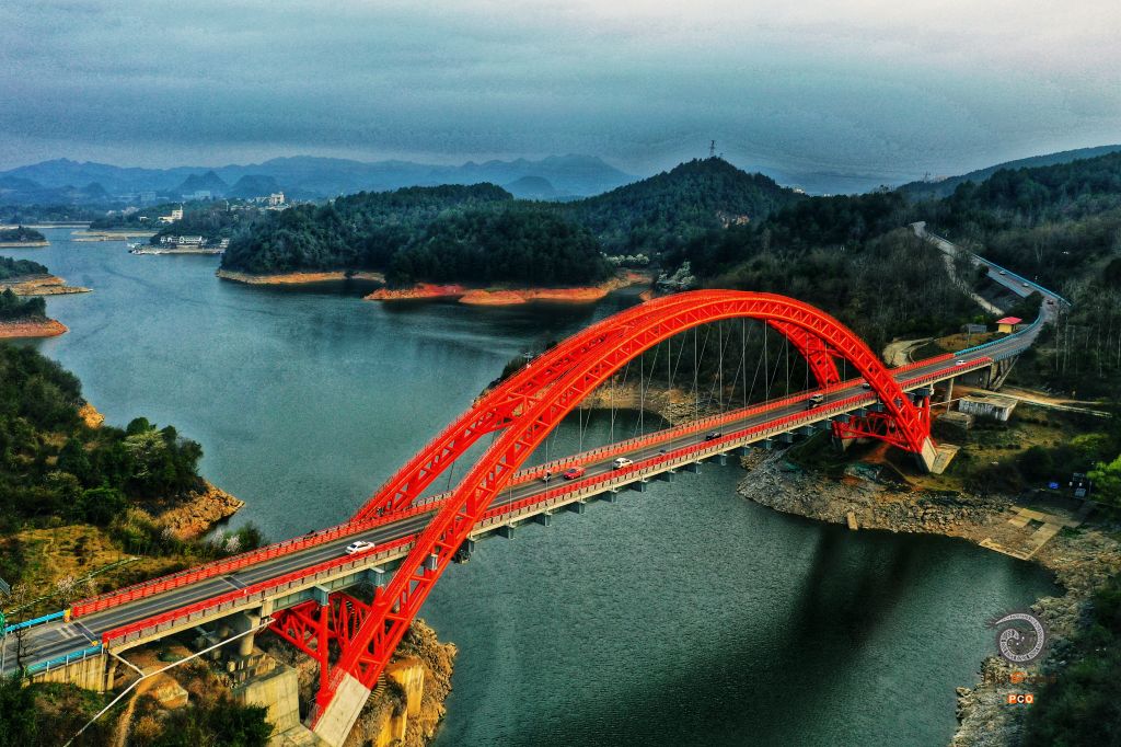 贵阳清镇红枫湖景区,贵黄公路上色彩悦目的花鱼洞大桥,是道靓丽迷人的风景。