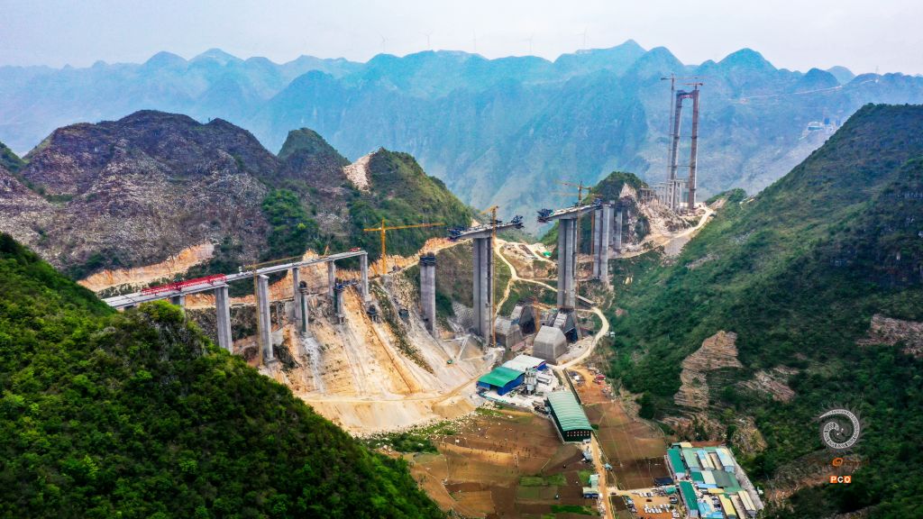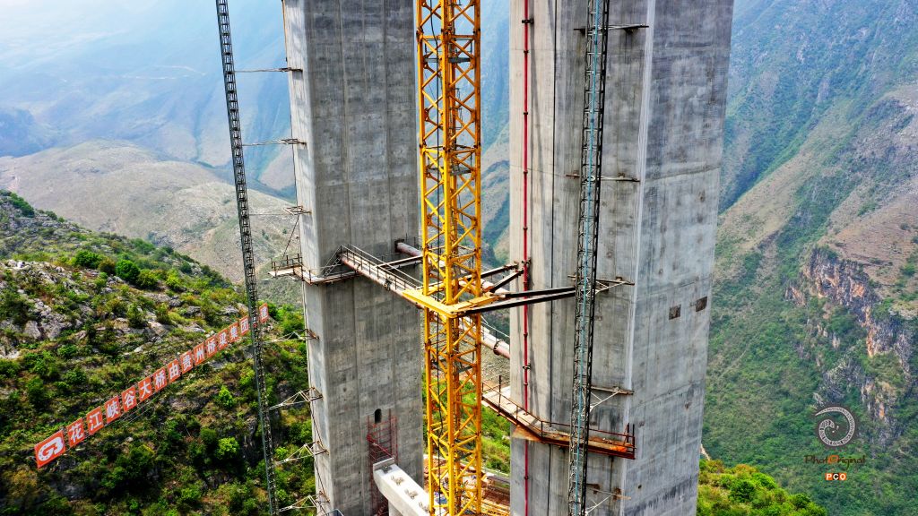 图片《在建的六安高速北盘江大桥》花江峡谷大桥是一座单跨钢桁梁悬索桥。项目2021年正式施工,由贵州公路集团和贵州桥梁集团共同承建,计划工期42个月。桥梁全长2890米,横跨高山峡谷,主跨1420米,主桥桥面距水面垂直高度625米。大桥建成后将超越杭瑞高速北盘江大桥,成为新的世界第一高桥,山区桥梁跨径第一桥。