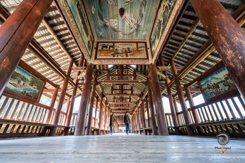 2023年1月31日,笔者到贵州省黔东南州黎平县地坪镇拍摄的“风雨桥”,造型美观雄伟,景色迷人。 风雨桥俗称花桥,是侗寨特有的标志性建筑,与鼓楼、侗族大歌合称侗族三宝。贵州省黔东南州黎平县地坪镇“风雨桥”桥廊内设栏杆坐凳、藻井及走廊,壁板上绘有“侗族锦织”“行歌坐月”“吹笙踩堂”等侗族风情画,记载了侗族人民生活习俗和侗族民族英雄传说。1997年,邮电部曾将此桥设计为邮票发型,每年吸引了约5000名游客慕名而来观赏地坪“风雨桥”。