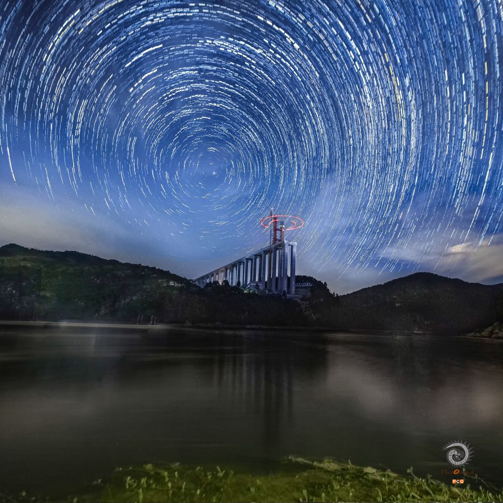 还在建设中的德余高速乌江特大桥在星轨下熠熠生辉。