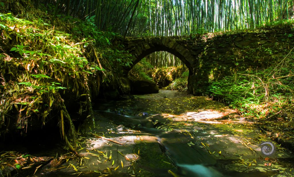 拍于贵州省盘州市竹海镇竹林内的古石桥。