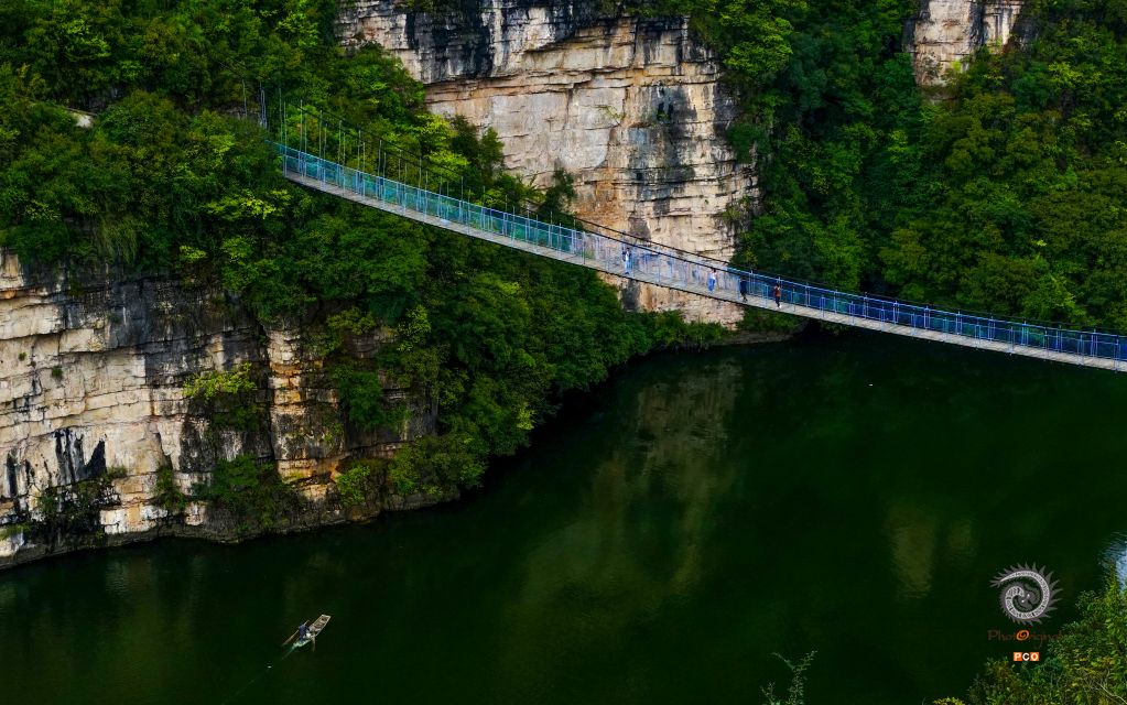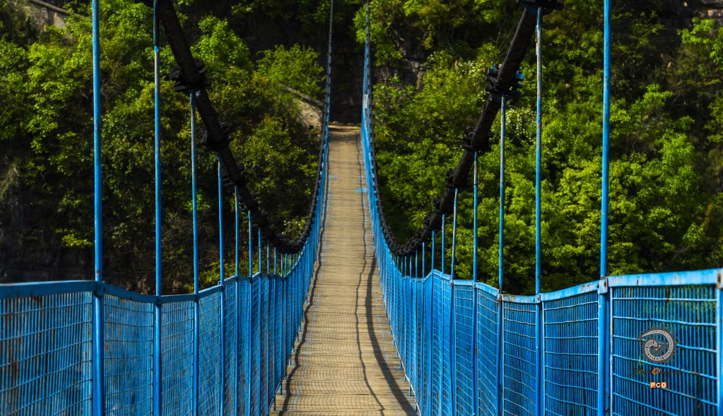 图片《猫跳河上的吊桥》是猫跳河三级电站钢索吊桥,位于清镇市和修文县交界的猫跳河流域红枫发电总厂三级电站上游500米处,该吊桥始建于上世纪60年代,长94米,宽1.5米,设计承载量600千克,可供10人或2头牛马同时通过。这种索桥较为简易,由于桥跨度长、离水面高、摇晃大,人在桥上走起是提心吊胆的,严重制约了两岸发展。随着经济的发展,2015年在上游200多米远的地方新修了猫跳河大桥。猫跳河大桥长170米,主跨为125米钢筋砼箱形拱桥。大桥的建成,为两岸的经济发展发挥了重要的作用。