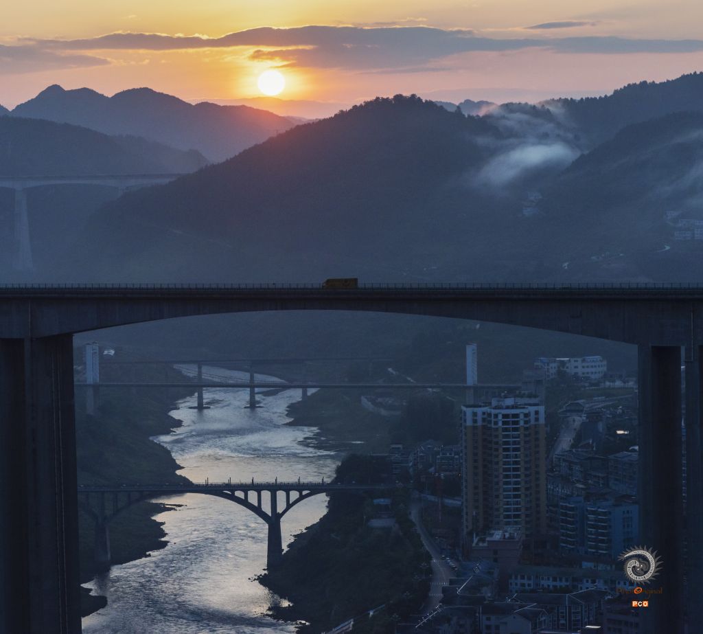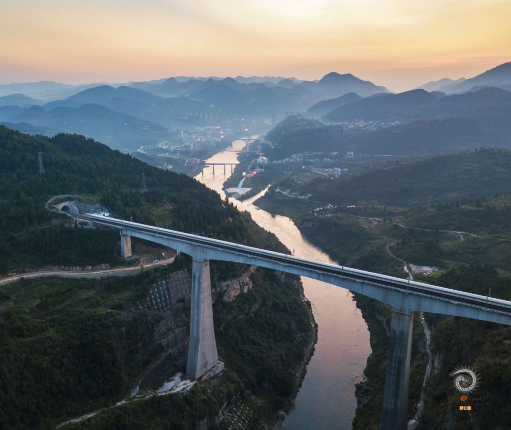 乌江镇两座高速桥,一座210国道公路桥,一座川黔铁路桥,一座高铁桥