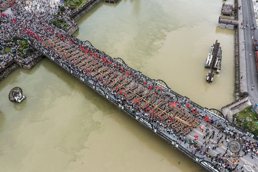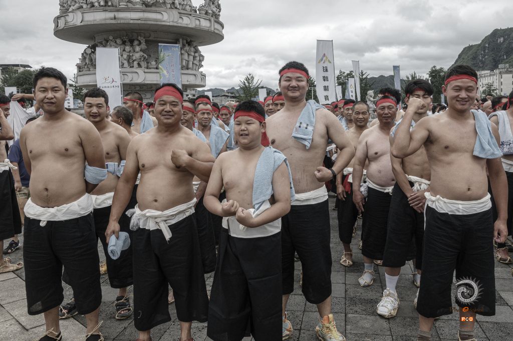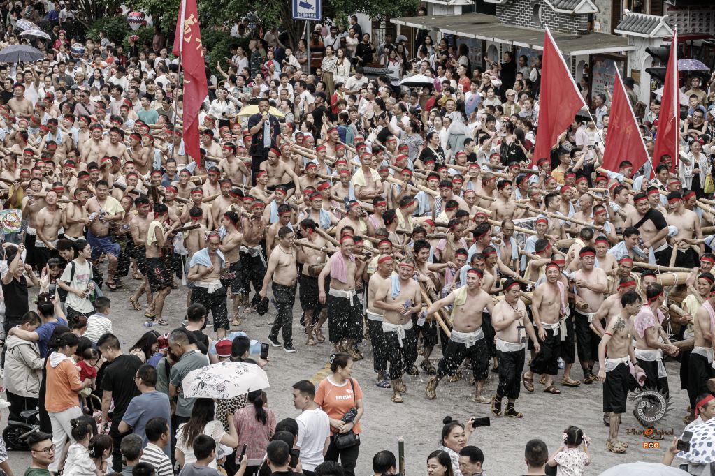 2023年“水韵贵州”中国施秉独木龙舟节于6月21日至25日在贵州省黔东南苗族侗族自治州施秉县举行。98.8米,陆上巡游需要2000余名壮汉来抬,入江得要8台起重机来吊,水中巡游不仅搭载了300多人,还配有10余艘龙舟相随,所到之处皆是万人空巷。图片主要拍摄于抬巨龙前的人物图片,以此来表达人们对龙舟的敬仰。