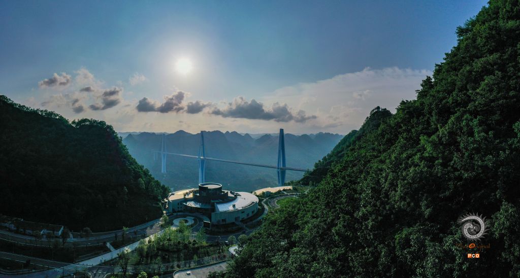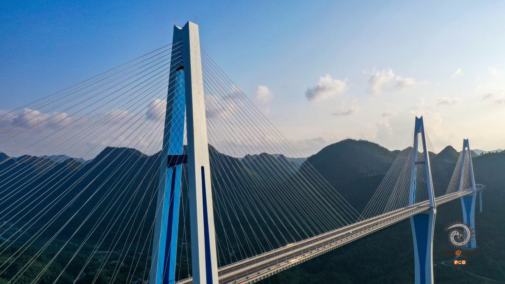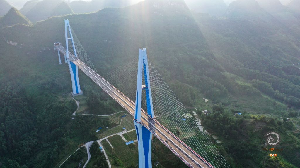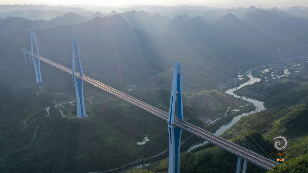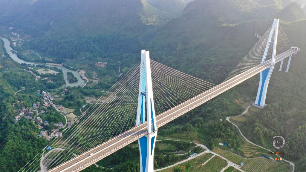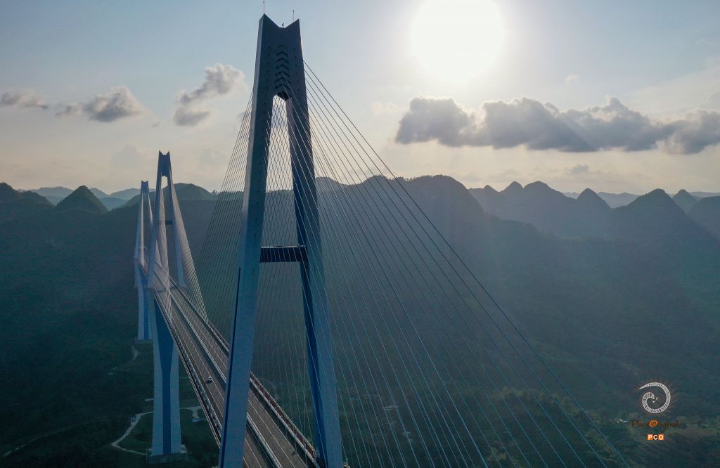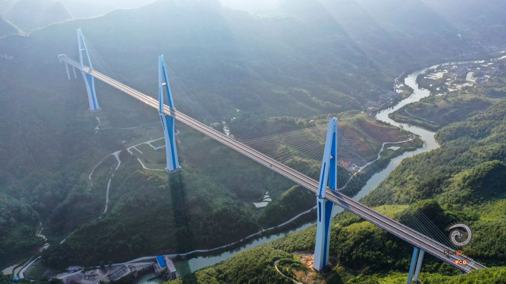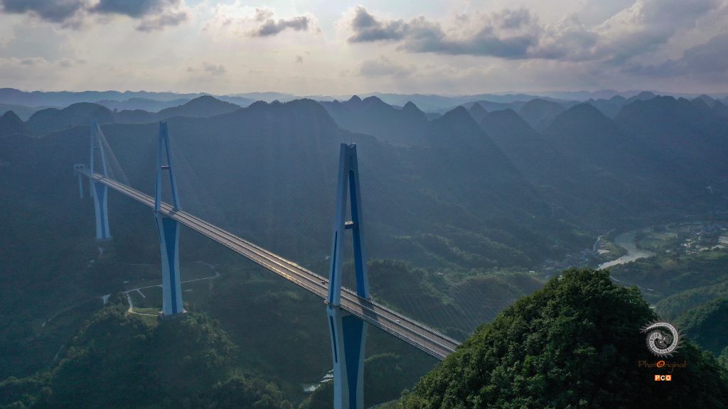 夏日,位于贵州省余庆至安龙高速公路平塘至罗甸段K32-K35公里处的平塘特大桥,与山体、河流、村庄等交相辉映,美如画卷。据悉,平塘特大桥为贵州省平塘至罗甸高速公路的控制性工程,横跨槽渡河峡谷。桥梁全长2135米,工程总造价14.2亿元人民币。该大桥为贵州山区最大跨径的三塔斜拉桥,中塔塔高332米,创下了“最高混凝土桥塔”的世界纪录,被誉为“最高、最美”桥塔。