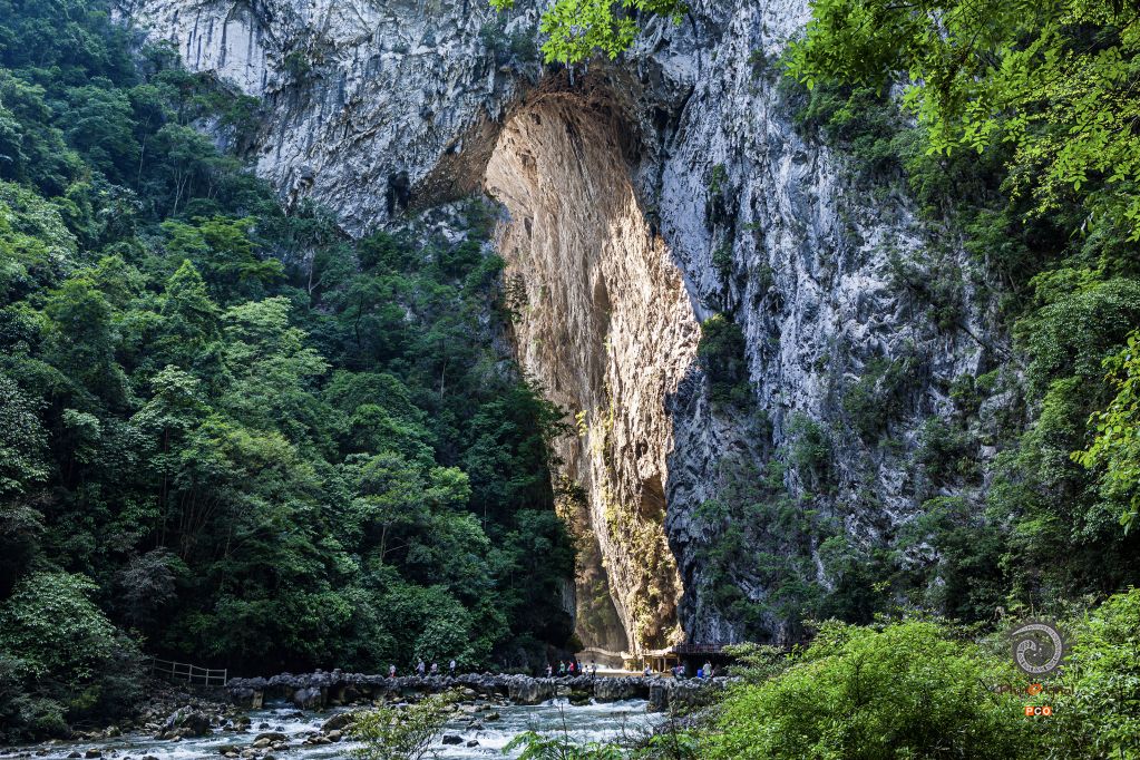 荔波县大七孔景区的天生桥,一束阳光从山的那边穿山而过。拍摄于2012年5月