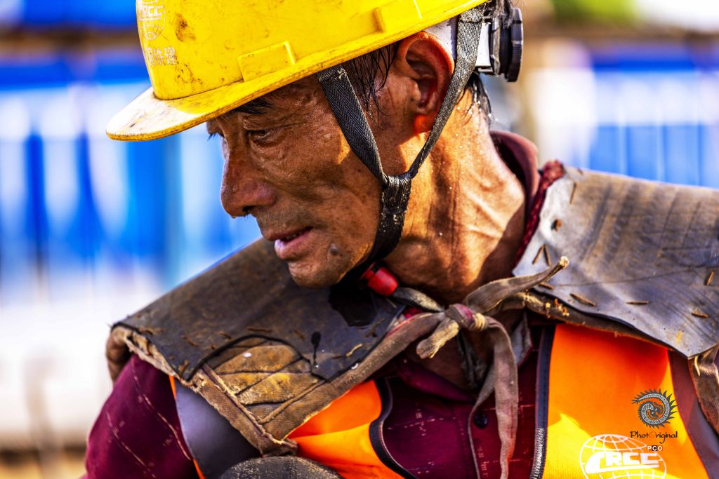 贵阳轻轨s1号线天河潭站制梁场,位于贵州天河潭立交北200米。该制梁场是s1线唯一一个100吨级桥梁预制厂。这幅作品拍摄于制梁工地,当时工人们正在紧张的劳作,我认真的观察着工人们,我忽然发现这位工人满脸是汗,全身心投入到劳动中,这正是我想要表现的画面,于是我调整好角度,抓拍了这个镜头。