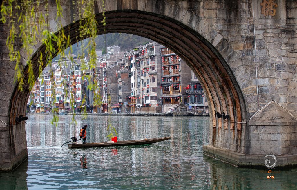 在镇远古城沿着舞阳河两岸一路走下来,看到新大桥下这一幕,美不胜收。