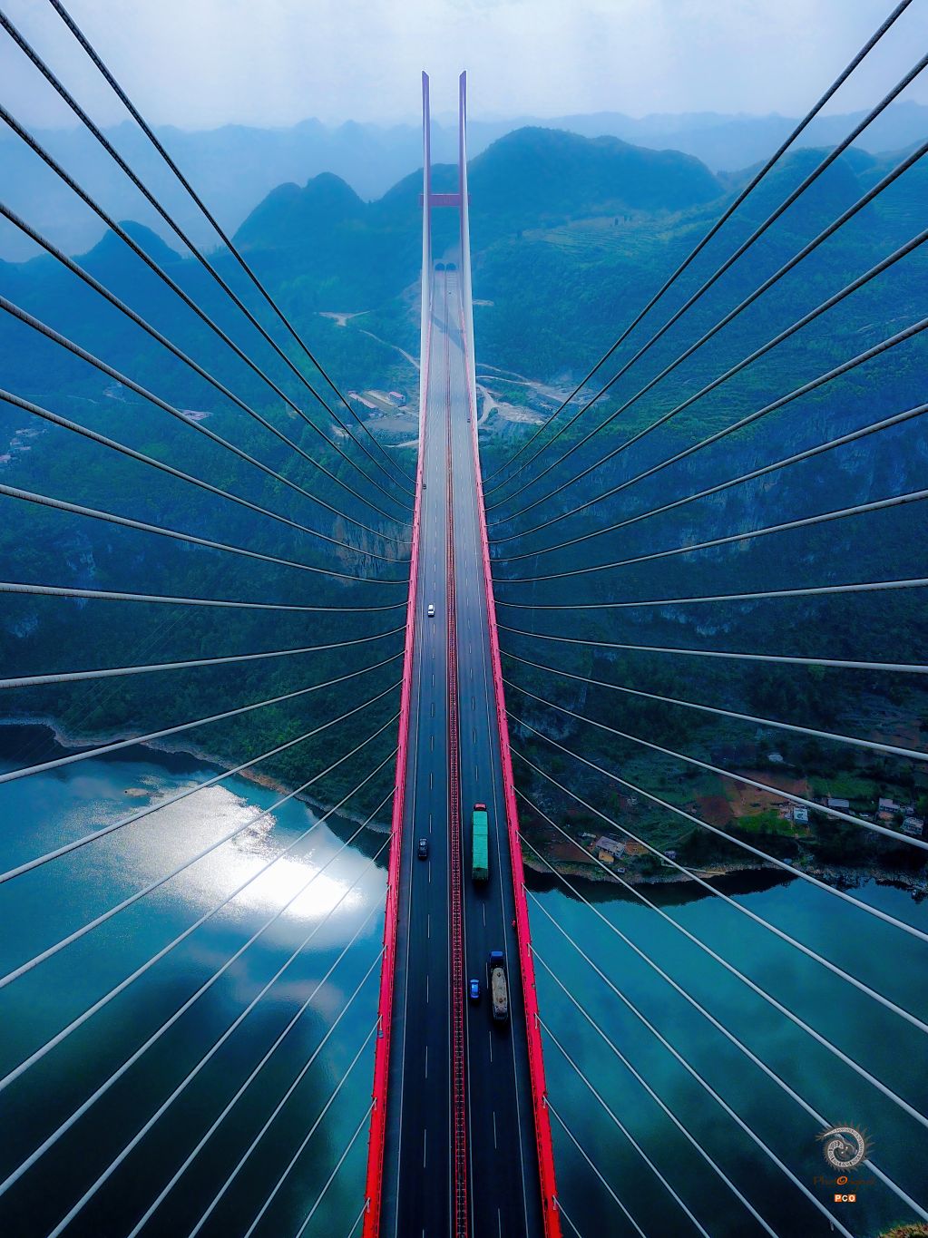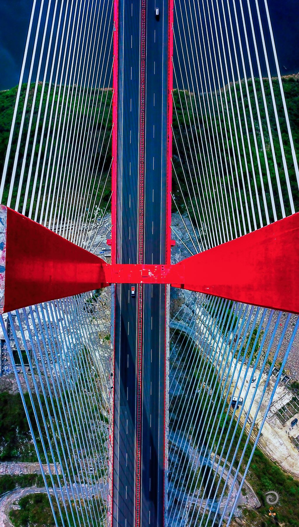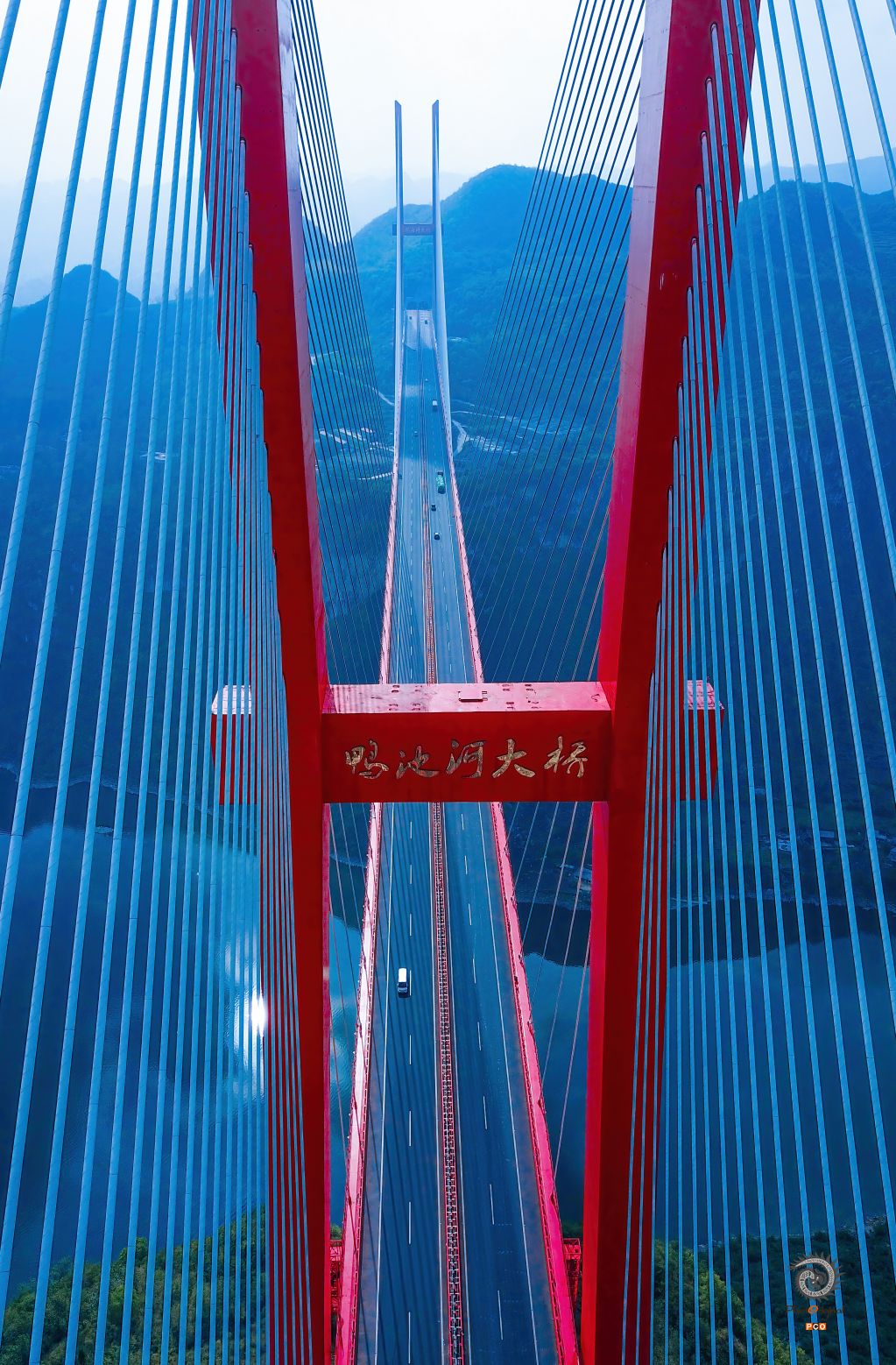 2018年4月12日,贵州省毕节市鸭池河大桥。 鸭池河大桥是中国贵州省境内连接毕节市与贵阳市高速通道,位于鸭池河水道之上,是贵阳—黔西高速公路(贵黔高速S82)上的重要节点工程。 鸭池河大桥于2014年8月24日动工建设;于2016年5月19日完成主桥合龙工程,大桥全线贯通; 于2016年7月16日,鸭池河大桥通车运营。 鸭池河大桥线路西起龙井沟隧道,上跨鸭池河水道,东至老虎山大桥;线路全长1240米,主跨长800米;桥面为双向四车道高速公路,设计速度80千米/小时,项目总投资达到7.8亿元人民币。 01 2018年4月12日,贵州省毕节市鸭池河大桥,天渐变通途。 02 2018年4月12日,贵州省毕节市鸭池河大桥为双塔双索面半飘浮体系混合梁斜拉桥,如同琴弦呈现出艺术之美。 03 2018年4月12日,贵州省毕节市鸭池河大桥为双塔双索面半飘浮体系混合梁斜拉桥,如同琴弦呈现出艺术之美。 04 018年4月12日,贵州省毕节市鸭池河大桥,黔西岸塔高258. 2米,上塔柱高86.1米,中塔柱高97.1米,下塔柱高73米。