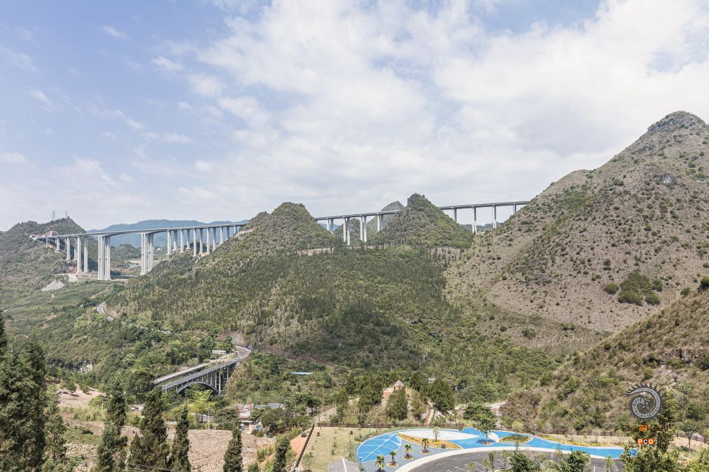 2023年5月拍摄于兴义市赵家渡附近。远山上的高速路桥与山脚下山谷间的公路桥在丛山里相互媲美。