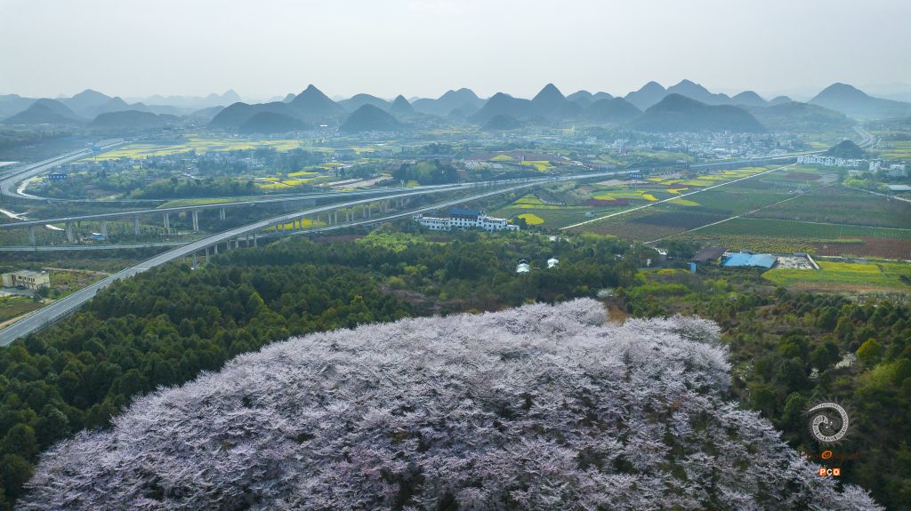 贵州安顺平坝樱花和油菜花为主,远方的喀斯特地貌美轮美奂,绿树成荫,公路两旁各式各样的树在三月鲜花盛开,形成花海公路,五彩缤纷,每年吸引海内外游客。