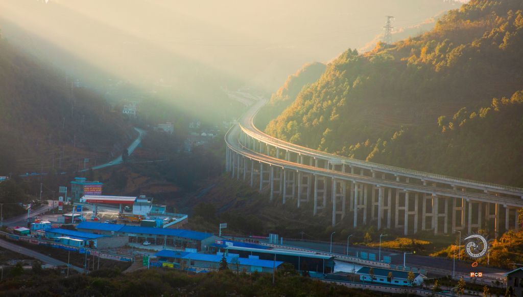 拍于贵州省盘州市内水兴高速民主出口附近的大桥。