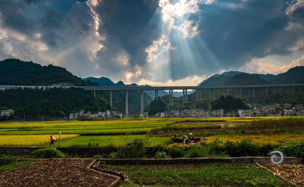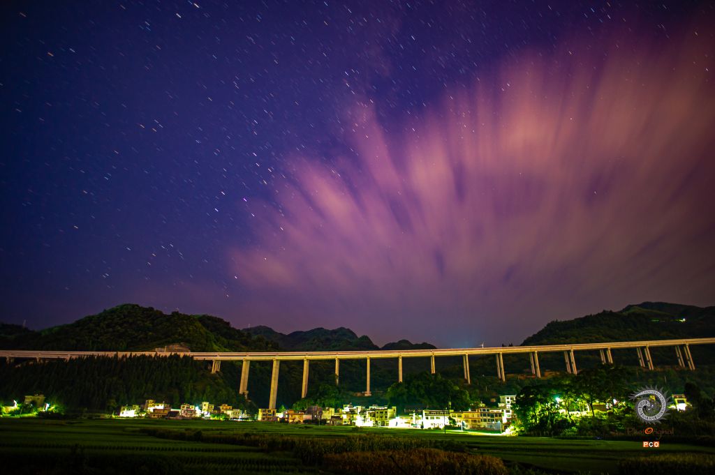 高卡大桥的星空。秋收,油菜花,雪景,构成美丽画面