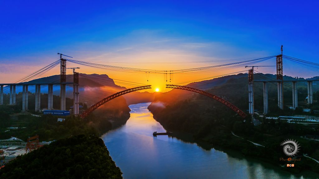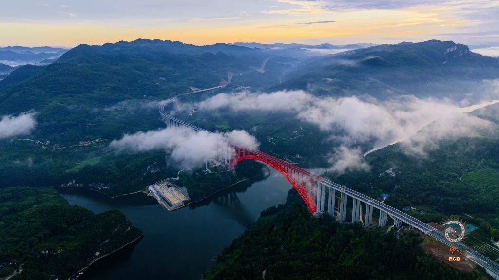 建设者们克服技术上的难题,圆满完成跨度世界第一上乘式钢管混凝土德余乌江特大桥修建任务