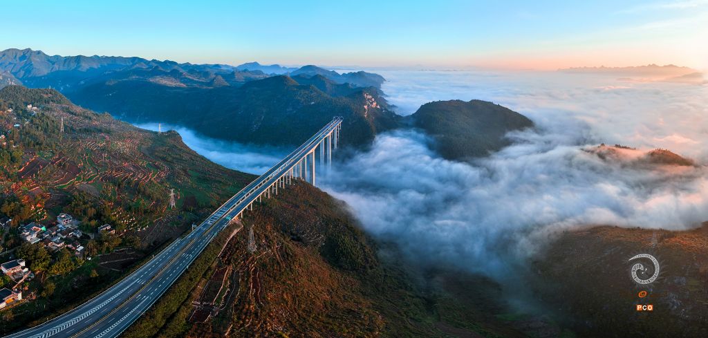 云端上的贵州省水兴高速水兴高速平川特大桥太美了。