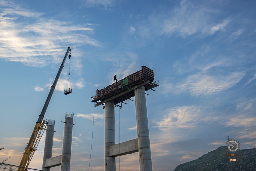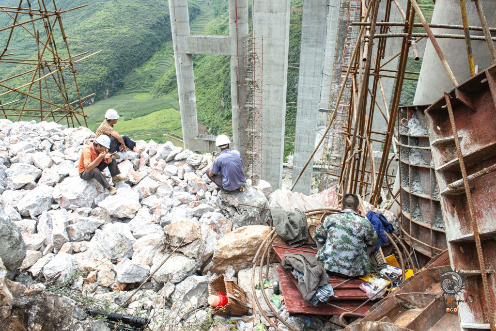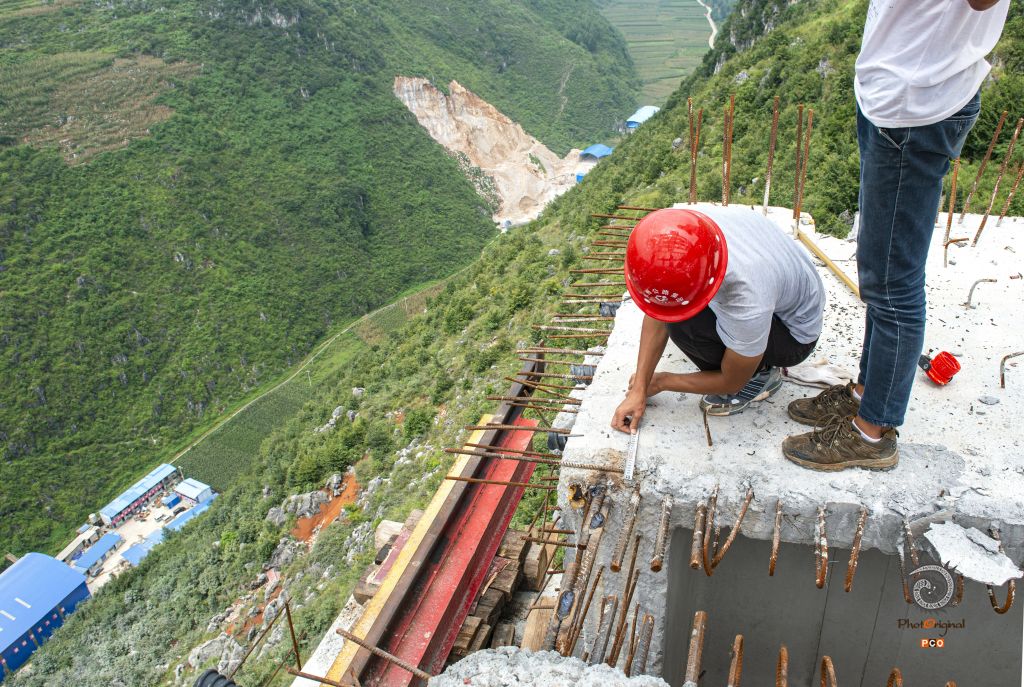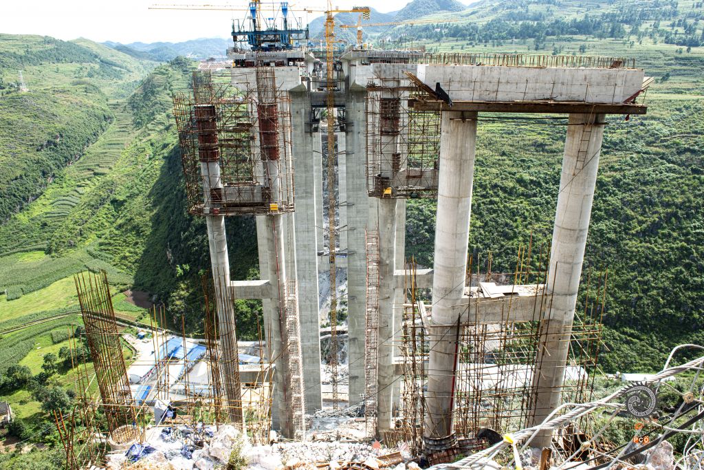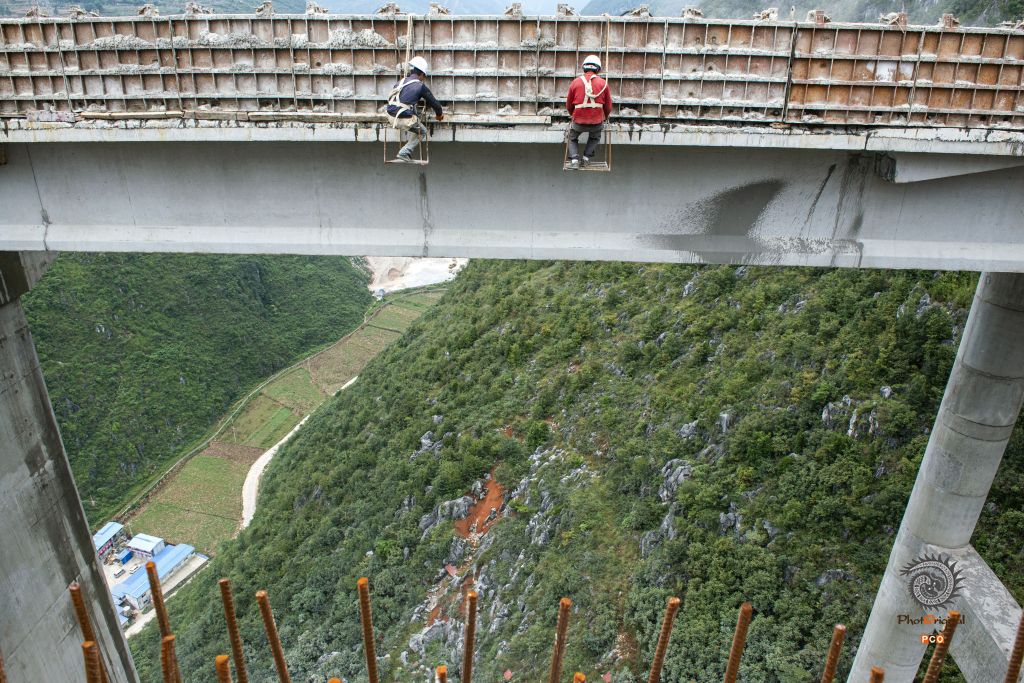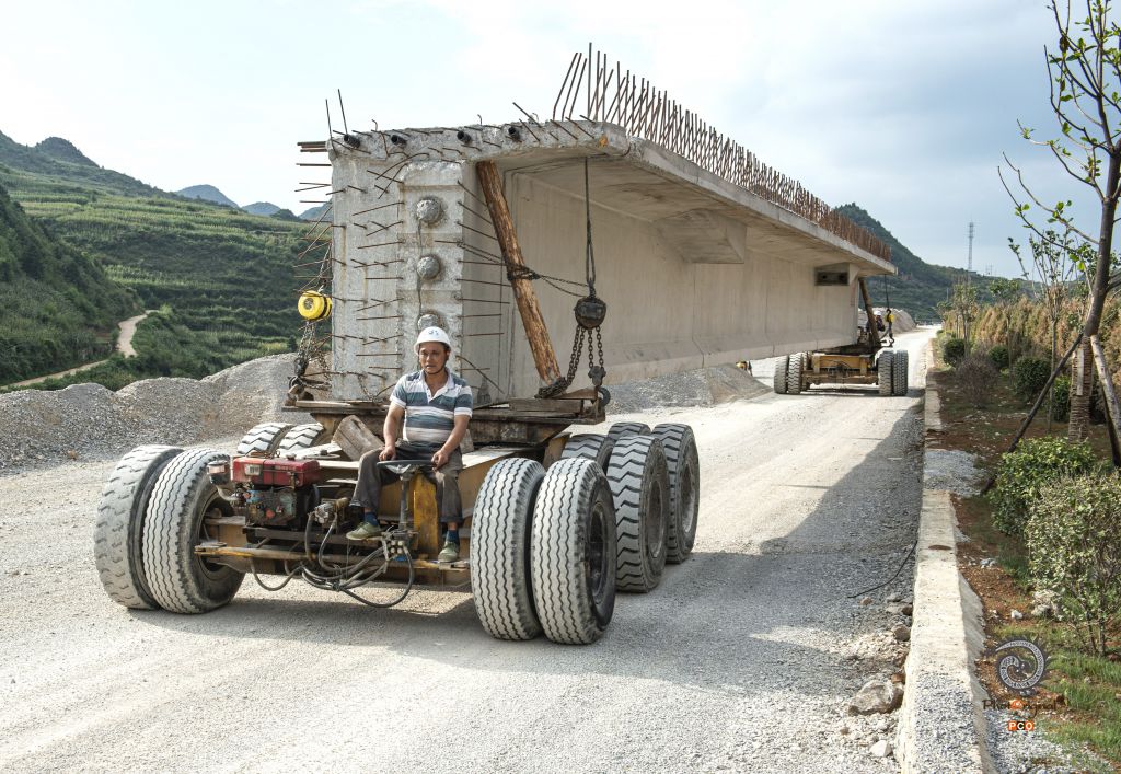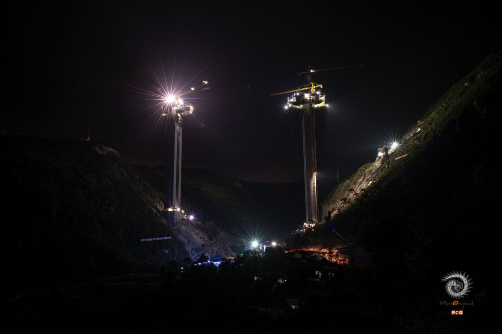 盘兴高速下平川特大桥位于盘州市丹霞镇平川村,为预应力砼连续钢构桥,长697.5米,最大墩高141.76米,引桥最大墩高74.098米,于2016年10月3日全线合拢。 图01:2016年4月10日,夜间仍在施工的大桥; 图02:2016年5月1日,一民工在引桥上施工; 图03:2016年8月21日,大桥初露端倪; 图04:2016年8月27日,技术员现场检查工程质量; 图05:2016年8月27日,小心翼翼拆除故障电机; 图06:2016年8月27日,又一片桥梁从远处的制梁厂缓缓运来; 图07:2016年8月27日,桥梁吊装时的一个小误差,让吊装人员紧张不已; 图08:2016年10月3日,最后一片桥梁成功吊装; 图09:2016年10月3日,两位工人奋力抽拉连接桥梁的钢筋; 图10:2016年9月30日,两位工人拆除护栏模板; 图11:2016年8月21日,民工在工地吃自带的午餐; 图12:2016年10月3日,参加桥梁施工的部分民工。