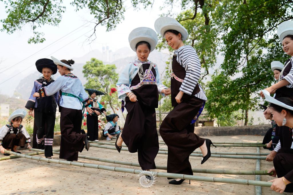 贞丰县平街乡小花江村村民在跳竹竿舞