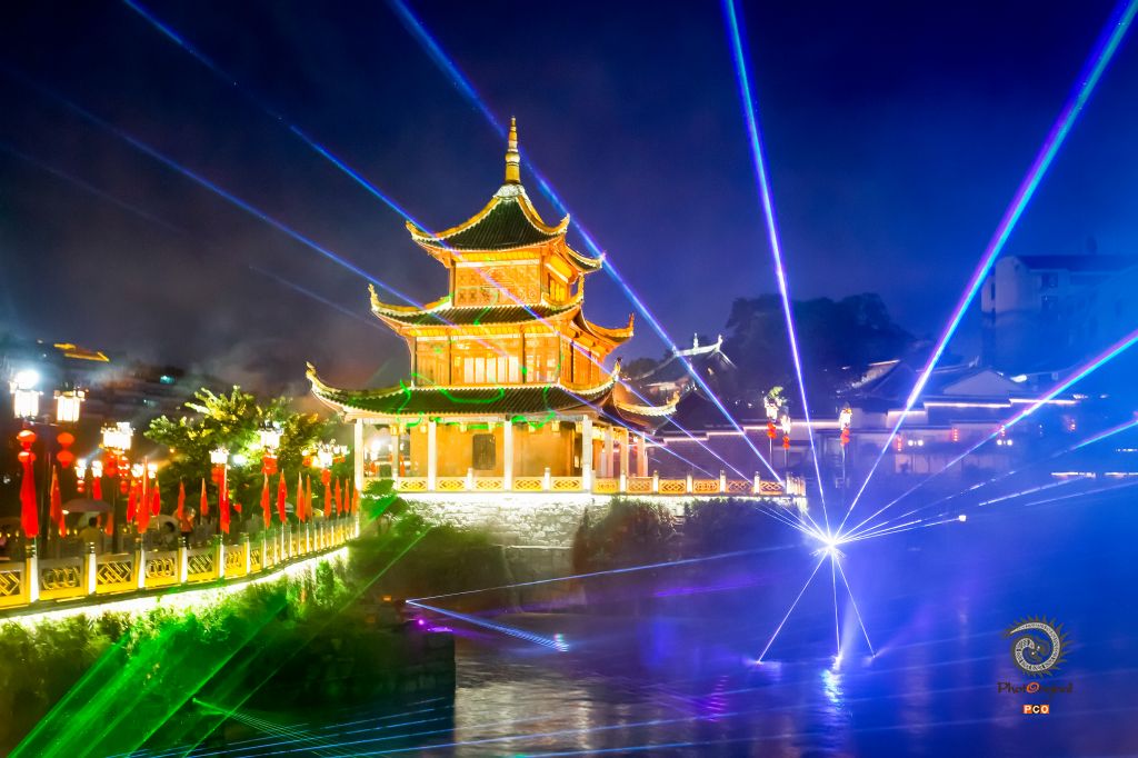 为迎接中国共产党建党100周年,营造普天同庆、安乐祥和的节日气氛,贵阳市市政工程服务中心精心谋划,以装饰行道树、布置景观小品、增添亮丽灯光等方式对重要道路、节点进行装扮,提升城市夜景亮化效果,点亮节日氛围。 7月1日,夜幕降临、华灯初上,甲秀楼等地标场所,同步开启夜景灯光秀,呈现出流光溢彩的喜庆景象。