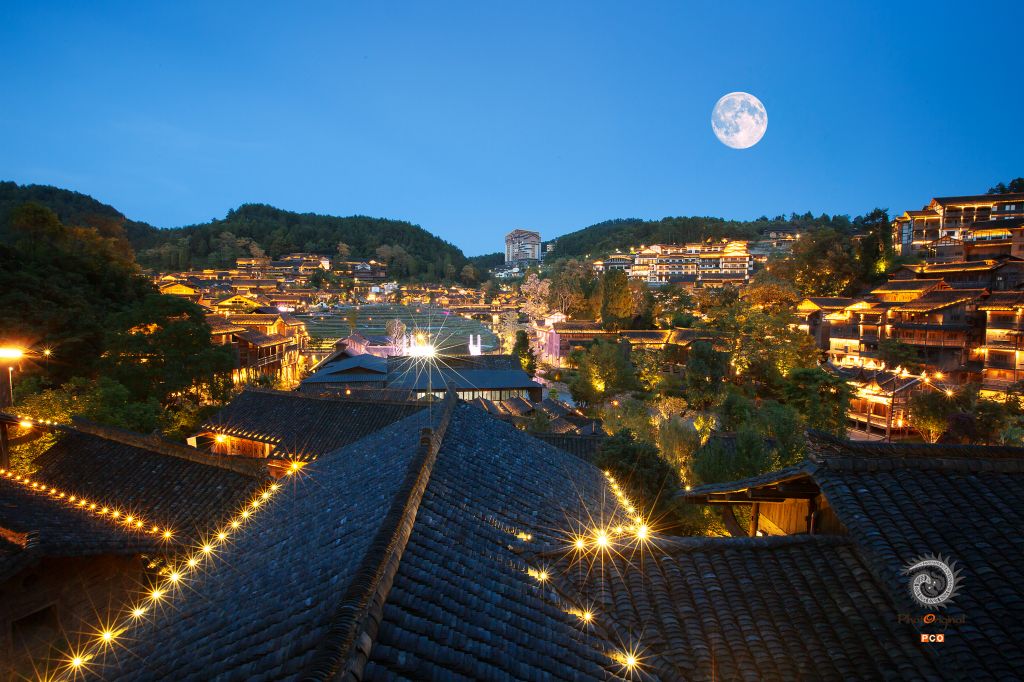 贵州遵义乌江寨国际旅游度假区是集观光、休闲、度假、会展为一体的大型综合业态的旅游目的地景区,依托恬静的山水自然环境和浓厚黔北村寨民俗氛围,结合自然山势与河道地形综合整治,修缮、复建和改建,呈现出一幅黔北民居群落画卷。2016 年乌江寨被列入第四批中国传统村落名录的村落名单。 2022年7月13日17时06分,月亮运行到距离地球全年最近的“近地点”,月亮最圆,月亮视直径比太阳全年视直径还要大,呈现“超级月亮”。