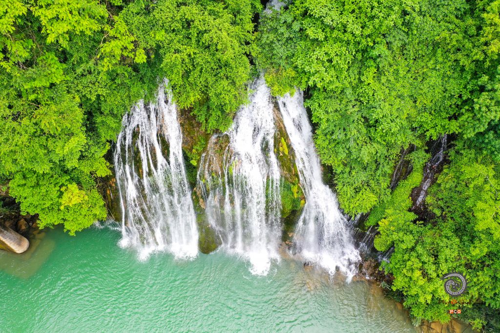 初夏时节,贵州省铜仁市江口县凯德街道凯市村白水洞瀑布迎来水量充沛期,奔流而下的瀑布犹如一条条白练挂在青山绿水间,蔚为壮观,美不胜收。 据了解,白水洞瀑布是一条地下暗河的出口,洞口高10米,宽16米,距洞口100米处的暗河丰水季节流量每秒2.5立方米,到洞口分上下两层喷涌而出,形成宽20米、高36多米的瀑布。