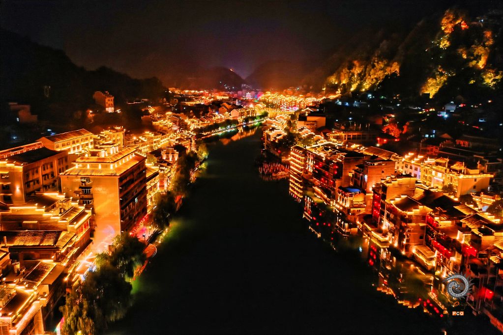流光溢彩的古镇夜景,舞阳河岸,镇远古镇的夜景,让每一位到过的旅客都是无比的赞叹,让人沉醉其中,舞阳河畔的夜景真的是美不胜收。2021年9月拍摄于贵州省镇远县,拍摄人:潘文胜,联系电话18212399140