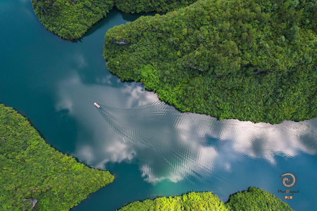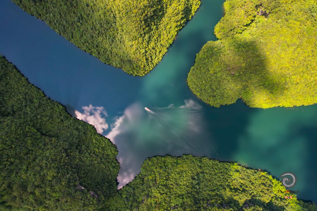 俯瞰鱼粮水库美如画