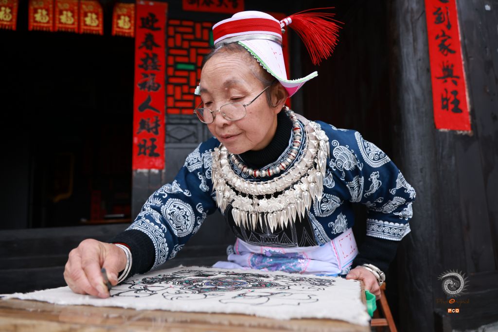 贵州省黄平县望坝村非遗蜡染传承人罗文珍,她以蜡为笔,画出锦绣传承。