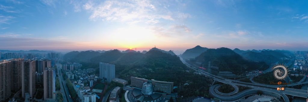 清晨的第一缕阳光洒向大地,万物苏醒,遵义的日出是大自然馈赠的一场视觉盛宴。在这里,云海翻腾、霞光万丈,每一帧都像是一幅绝美的画卷。日光初破晓,金辉洒满天际,万物在晨光中,欣然苏醒。朝阳下,立交桥宛如盘旋的巨龙,逶迤伸展向远方;高楼林立,洒满金辉,美轮美奂。2024年3月29日无人机拍摄于贵州省遵义市。