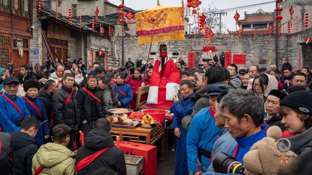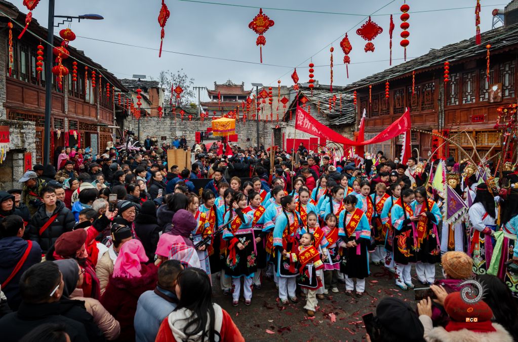 2025年2月14日,农历正月十七,安顺市西秀区鲍家屯举办一年一次的抬汪公活动,吸引大量游客参观,场景十分壮观。