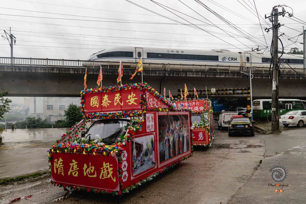 2025年6月30日(农历六月六),贵州省安顺市大西桥镇举行传统的抬关公活动,巡游花车经过高铁桥下时恰逢高铁驶过,传统与现代同框。