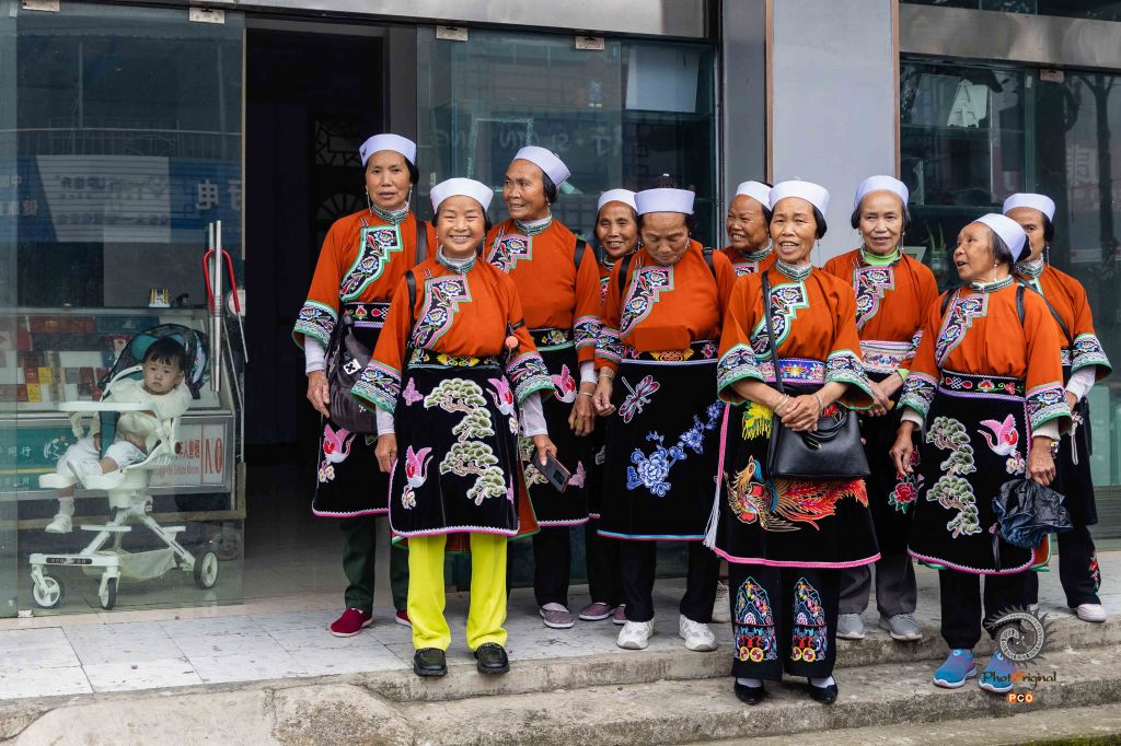2025年6月30日,贵州省安顺市大西桥镇举行传统的“抬关公”活动,路边观看的屯堡妇女和婴儿车。