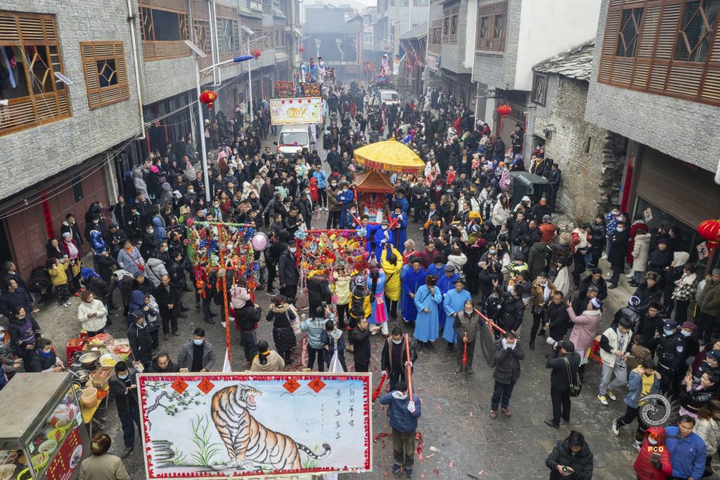 屯堡抬亭子,又称“抬汪公”,是贵州省安顺市屯堡村寨纪念唐代汪华(徽州府越国公忠烈汪王)诞辰的传统民俗活动,为国家级非物质文化遗产。该习俗源于隋唐时期徽州对汪华的信仰,明洪武年间随“屯军戍边”传入安顺,传承至今已600余年。活动于每年正月举行,涵盖迎神、公祭、巡游等环节,活动期间通过公开遴选德高望重的公祭人主持仪式,巡游时汪公像由八抬大轿护送,融合明代江淮社火传统与屯堡军屯文化,巡游队伍包含神轿、地戏队、秧歌队等,村民沿途祭拜祈福,表达祈求风调雨顺的愿景。
