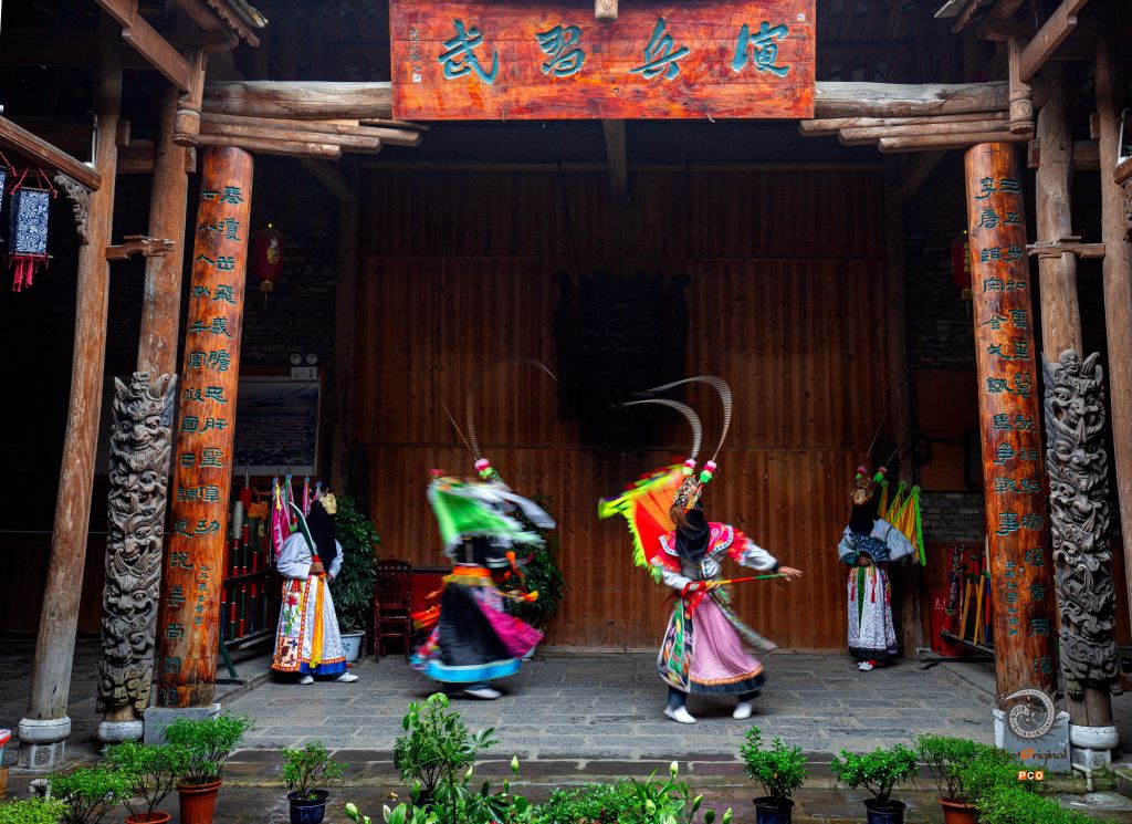 屯堡地戏是 贵州安顺 及周边屯堡地区独有的民间戏剧形式,起源于明代“调北征南”历史背景下的军傩活动,融合了祭祀、娱乐与军事演练功能。承载着 儒家忠义精神 与 国家认同 的文化内涵。2015年9月17日摄。
