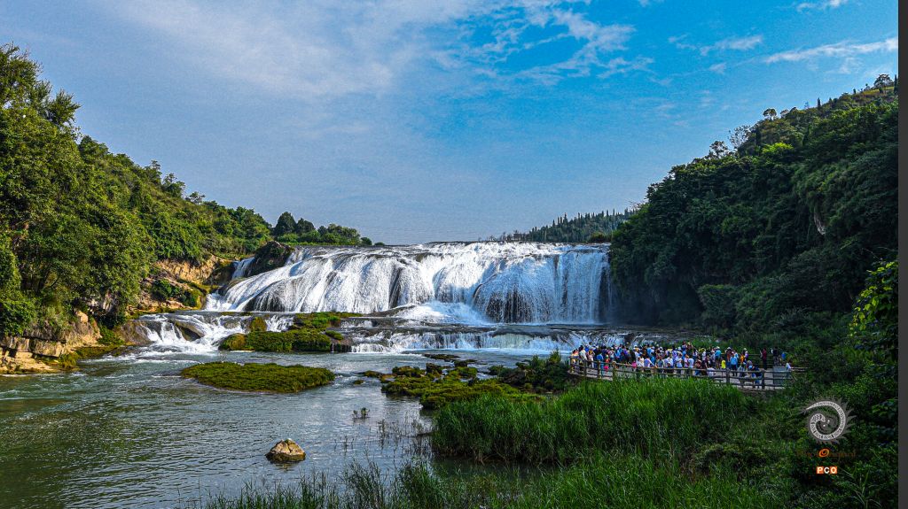 2016年09月03日上午,安顺陡坡塘瀑布如银幔横空,宽幅水幕层叠跌宕,溅起的水雾轻缠晴云。岸畔木栈上,游客簇拥仰望,目光追着浪涛 “万马归槽” 般奔涌,快门声与瀑流轰鸣交织。青绿崖壁环伺间,自然的磅礴与人间的惊叹相融,凝成天地与人共鸣的鲜活剪影。