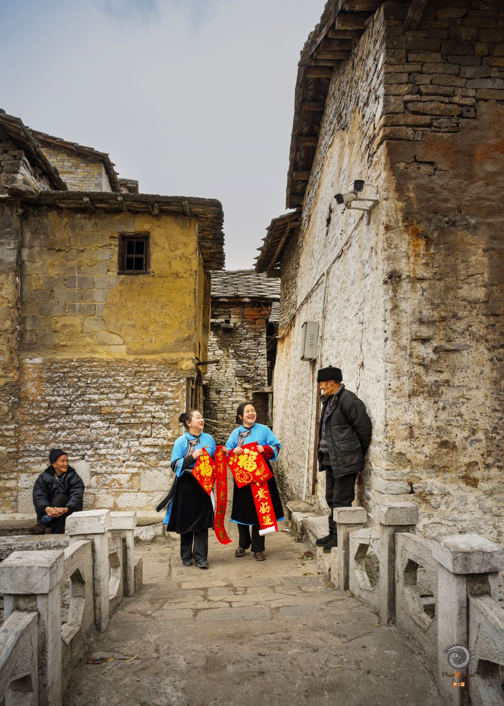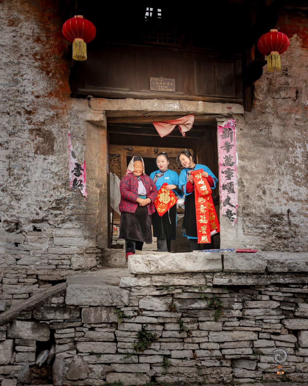 2025年1月26日,农历新年即将到来,安顺天龙屯堡景区工作人员给老人送春联、送祝福,迎新春。