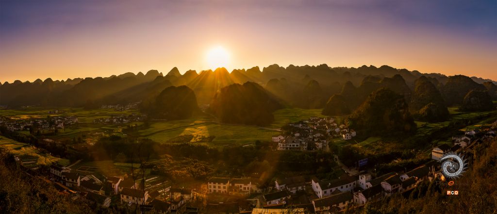 《夕照万峰家园美》,拍摄地址:黔西南州兴义市万峰林,拍摄日期:2018.2.22日