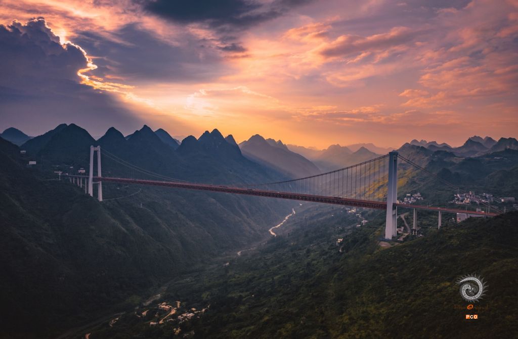 侯凌,2019年6月摄于安顺市关岭县,《航拍关岭坝陵河大桥的日落时分》