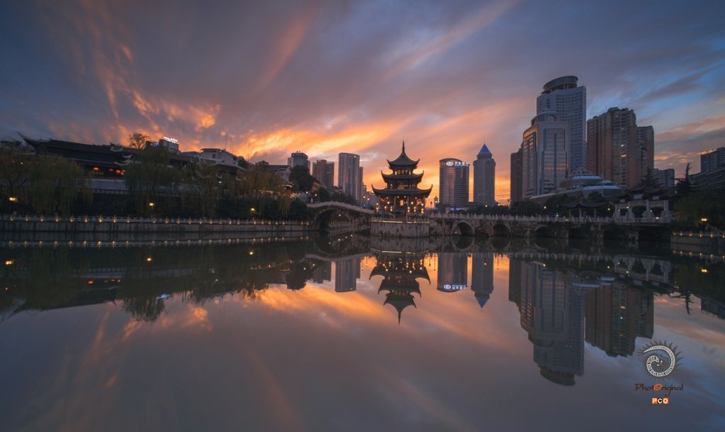 侯凌,2017年1月摄于贵阳市甲秀楼,《黄昏下火烧云笼罩的贵阳甲秀楼》