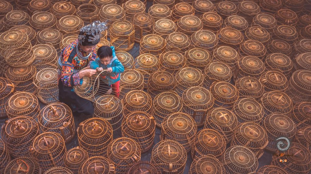 侯凌,2016年3月摄于凯里市丹寨县,《鸟笼之乡母子传承编织鸟笼的手艺》