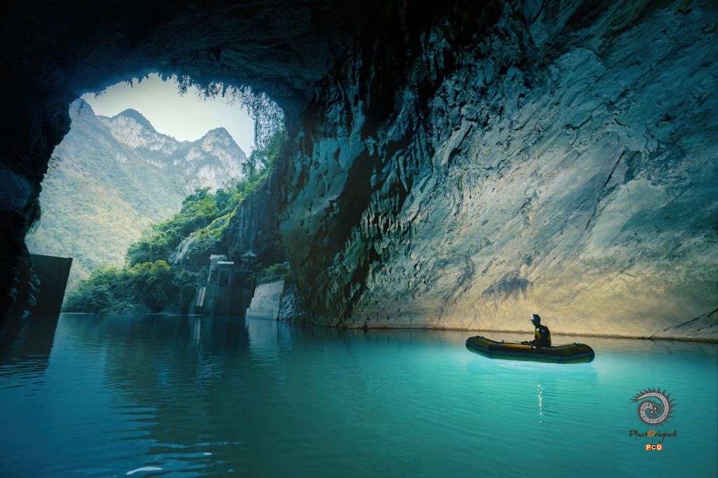 安顺市紫云苗族布依族自治县格凸河“小穿洞大坝”。水中富含钙离子,使得地下河水泛着幽蓝的亮光。