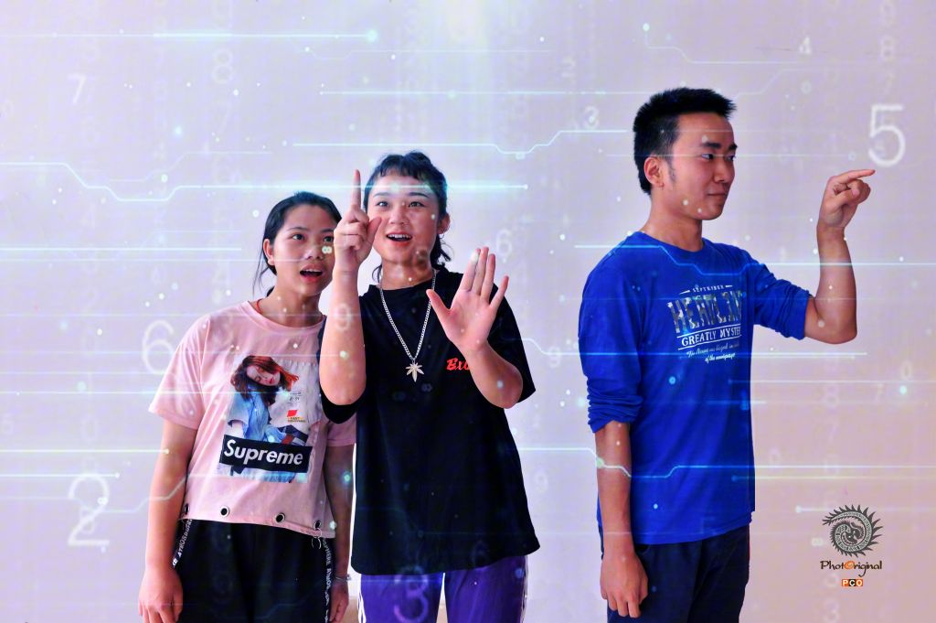 图为来自各所院校的同学们在贵州省黔南州惠水县百鸟河数字小镇感受科技力量。