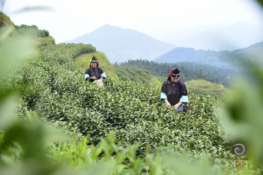 2023年4月1日,贵州省黔东南苗族侗族自治州榕江县两汪乡空申村万亩青白茶产业园,苗族群众正忙采茶供应市场