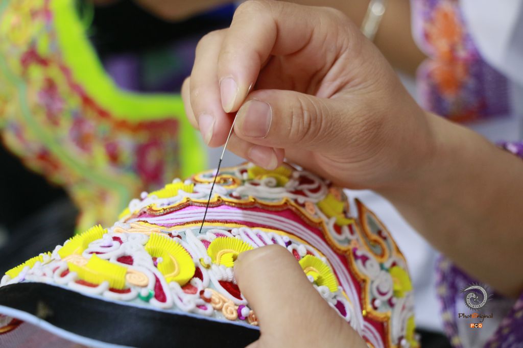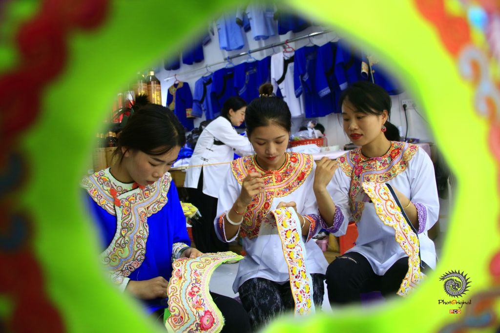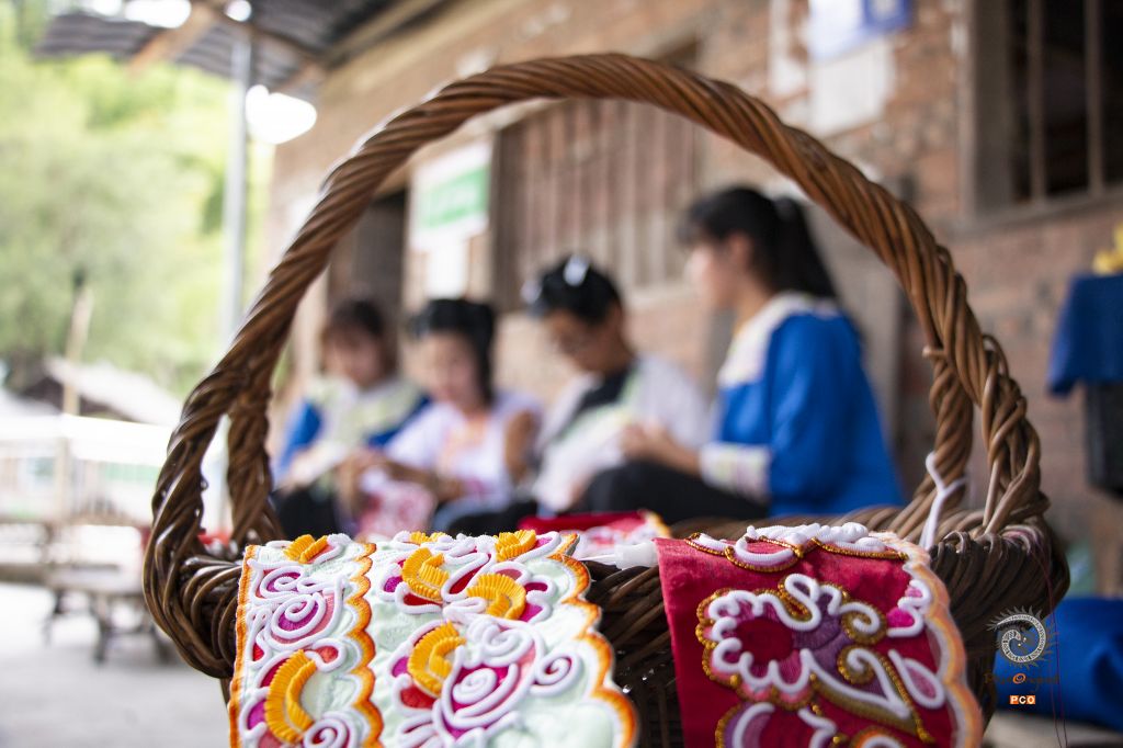 2022年7月28日,贵州省黔东南苗族侗族自治州榕江县乐里镇乔勒村青年学生学习侗绣非遗手工