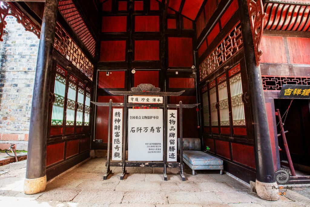 石阡万寿宫始建于明万历十六年(1588年),清乾隆三十二年(1767年)改修。石阡万寿宫坐东朝西,分别有左、中、右三条轴线组成三进院落,左为圣帝宫,右为紫云宫,中为万寿宫及戏楼,周围以高约14米砖墙围护。万寿宫布局严谨,工程宏伟,建筑考究,在贵州省内同类建筑中名列榜首。文化大革命中大部分木雕泥塑遭毁,然而其结构完好,在同类建筑中实属罕见,其建筑工艺又将中原文化、地域文化、民族文化结合在一起,生动形象地反映了历史上石阡古城的经济发展,文化交流和民族融合的状况。 2001年6月25日,石阡万寿宫被中华人民共和国国务院公布为第五批全国重点文物保护单位。