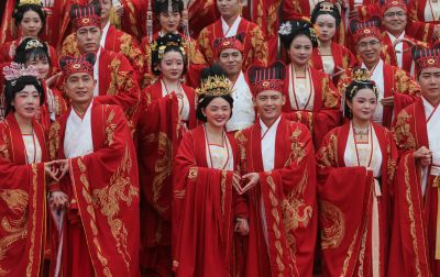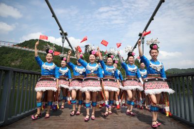6月22日,在贵州省丹寨县万达小镇,当地群众参加“唱支山歌给党听”主题快闪活动。