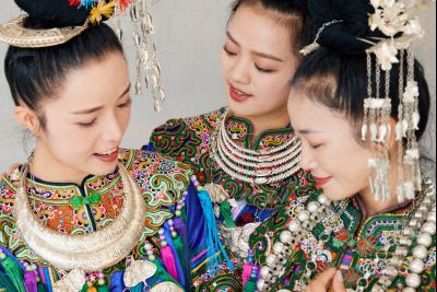 丹寨县蓝锦染艺非遗扶贫工坊的苗族妇女正在绘制蜡染