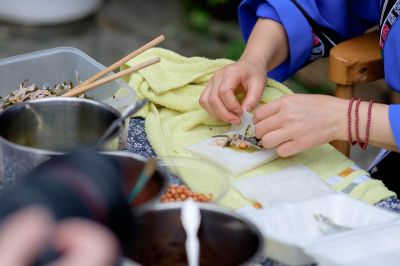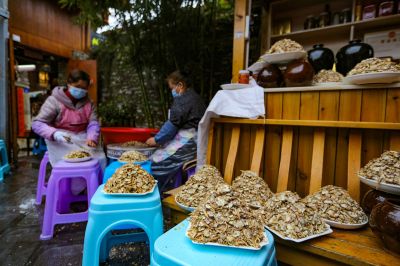 《居民制作屯堡美食脆慈菇》