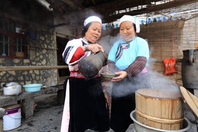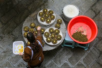 《居民在摆放制作好的屯堡美食甜饭》