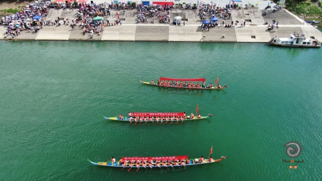 盛事龙舟--杨晓海---187855778962021年6月14日,在贵州省锦屏县茅坪镇茅坪村清水江上,村民在进行龙舟游河。(1/1)