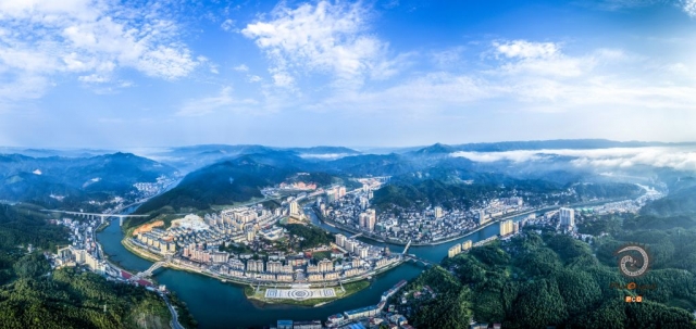 “人在水中画卷里,青山河流显山城”。瑰丽的锦屏山城,像刚刚出浴的美人,梳洗打扮一新,容光焕发,明眸善睐,转眄流睛,楚楚动人。只见清水江水清如镜,缓缓流淌。